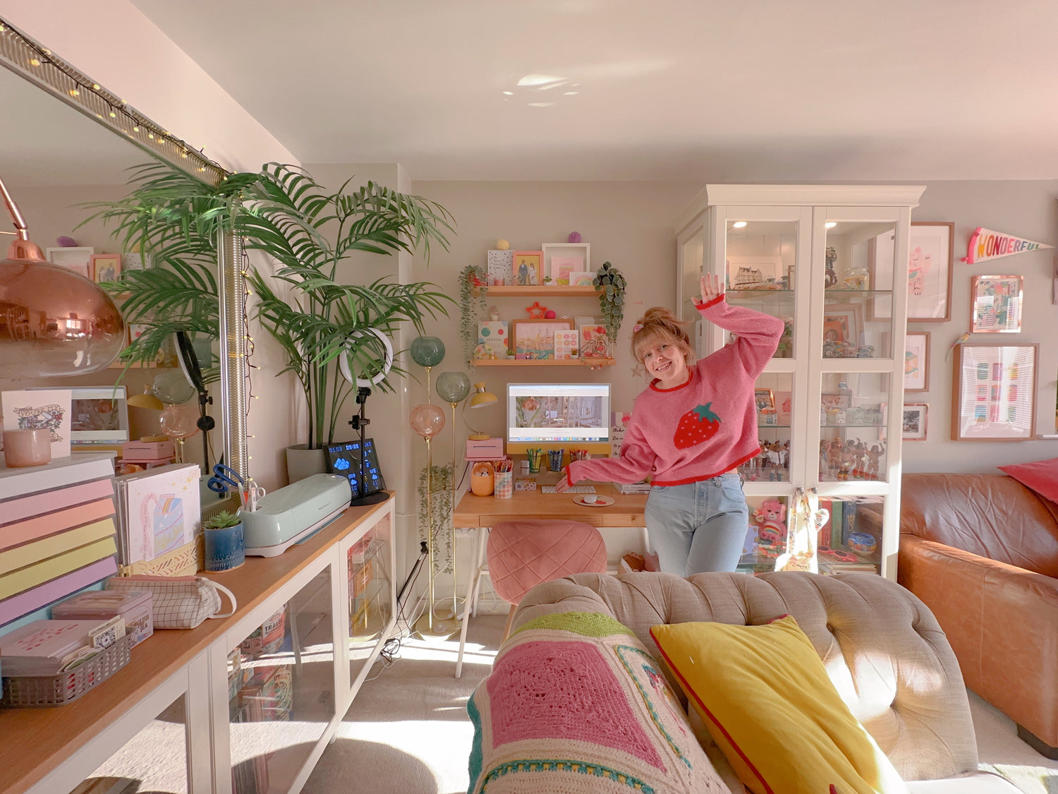 Hey, I'm Sarah... this is me in my little studio tucked away in a corner of my living room. Find out more about me here...