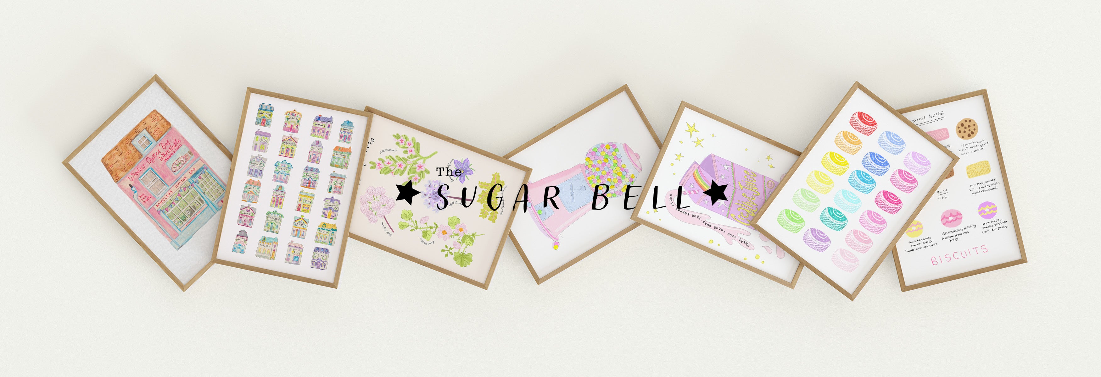 Cute and colourful art prints, cards, stickers and pins.